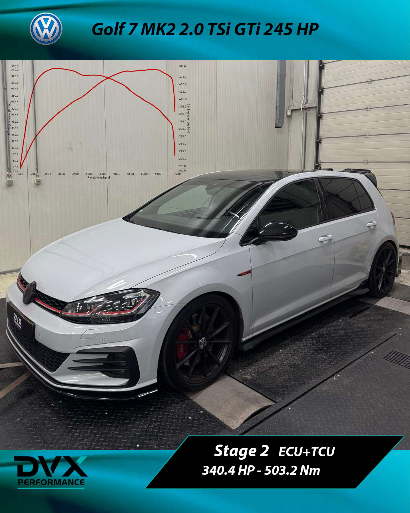 We willen er u wel attent op maken dat we in deze fase van ontwikkeling, een vermogen en/of koppel genereren dat buiten de tolerantie van de constructeur kan vallen. Indien dit het geval zou zijn, zullen wij ook andere onderdelen vervangen, zoals een versterkte diverter valve, koppeling, etc. om de betrouwbaarheid en veiligheid opnieuw te kunnen garanderen. Echter kan DVX Performance niet verantwoordelijk gesteld worden voor schade ten gevolge van fabrieksfouten.